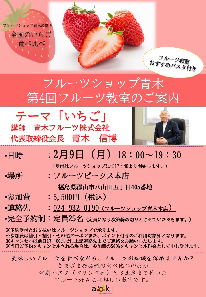 青木フルーツ株式会社 代表取締役会長の青木信博による「いちご」の楽しいお話をきいてみませんか?